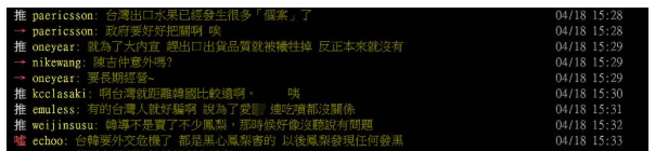 其他網(wǎng)友也說(shuō),就為了大內(nèi)宣趕出口、出貨,質(zhì)量就被犧牲掉,反正本來(lái)就沒有要長(zhǎng)期經(jīng)營(yíng),若補(bǔ)助運(yùn)費(fèi)卻不把關(guān)質(zhì)量,就是運(yùn)出去丟臉而已,商譽(yù)臭掉以后更難賣,也有人酸說(shuō),“那是自由的顏色啊,農(nóng)委會(huì)已經(jīng)正名那是自由菠蘿啊”、“不知道花多少大內(nèi)宣”。