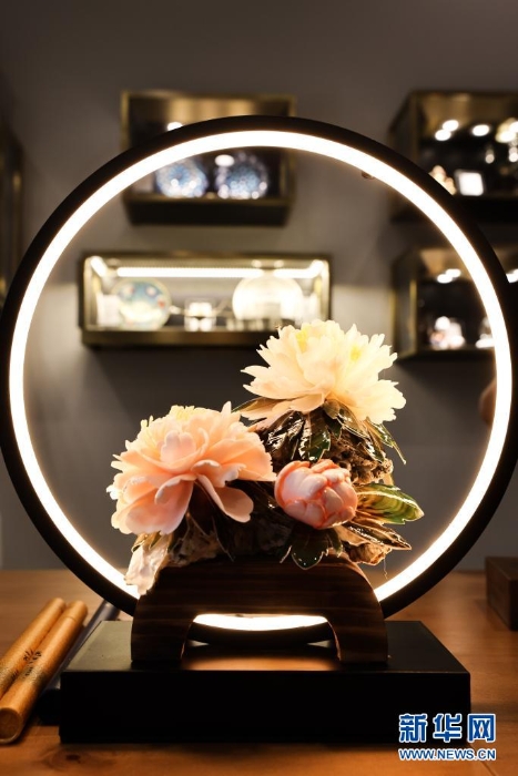 4月20日,博鰲亞洲論壇主題公園展廳里的貝雕。