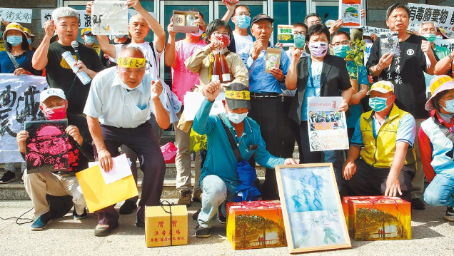 臺當(dāng)局領(lǐng)導(dǎo)人蔡英文照慣例在世界地球日接見環(huán)團,代表們在會前舉行記者會,并展示要送給蔡英文的伴手禮。(圖片來源:臺灣《中國時報》)