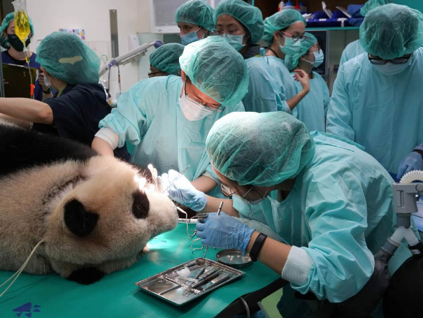即將滿8歲的圓仔,在例行訓(xùn)練課程中,被保育員發(fā)現(xiàn)左下側(cè)門(mén)牙牙冠斷裂,導(dǎo)致牙髓暴露,園方立即與獸醫(yī)、醫(yī)療顧問(wèn)團(tuán)討論進(jìn)行治療。