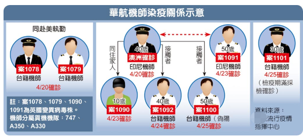 華航機(jī)師染疫關(guān)系示意圖。圖片來(lái)源臺(tái)媒