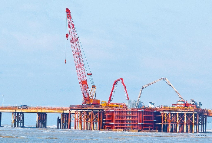 圖為施工中的三接連接橋梁工程現(xiàn)況。(中國(guó)時(shí)報(bào)資料照片)