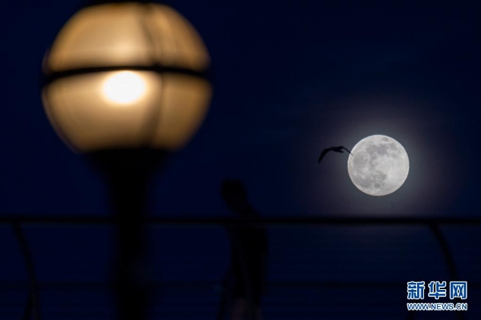 4月27日,“超級月亮”出現(xiàn)在新加坡城市的天空。