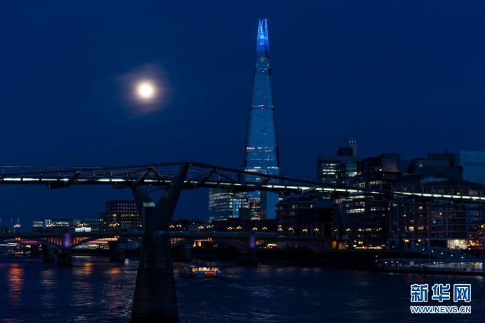 這是4月26日在英國倫敦拍攝的千禧橋附近的“超級月亮”。