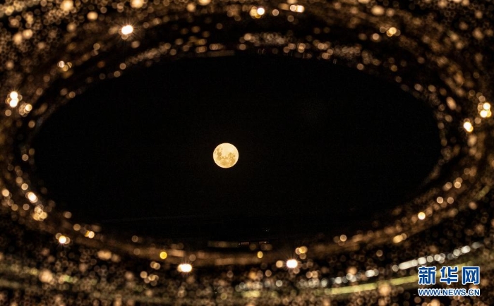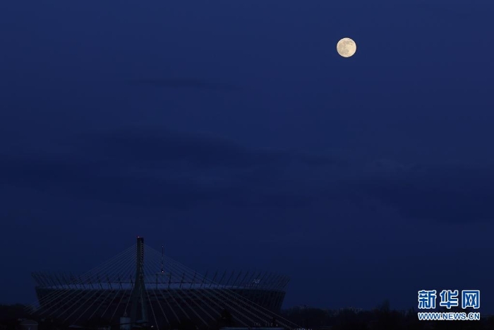 4月26日,“超級月亮”出現(xiàn)在波蘭華沙的國家體育館上空。