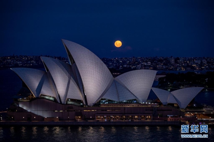 4月27日,“超級月亮”出現(xiàn)在澳大利亞悉尼歌劇院上方。