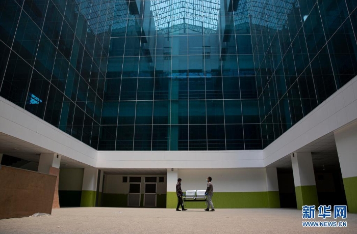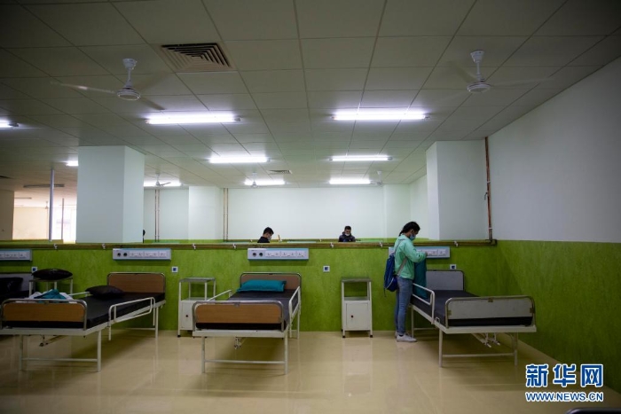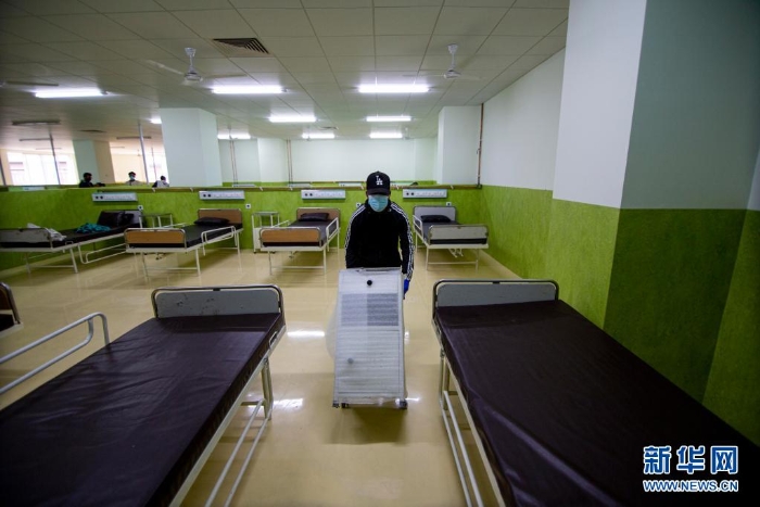 5月5日,尼泊爾志愿者在首都加德滿都參與改造隔離中心的工作。