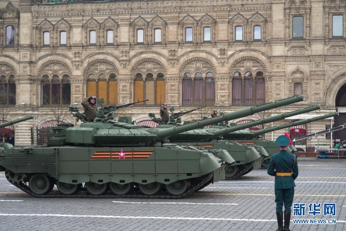 5月9日,在俄羅斯莫斯科舉行的勝利日閱兵式上,坦克編隊(duì)駛過(guò)紅場(chǎng)。新華社記者苑欣芳攝