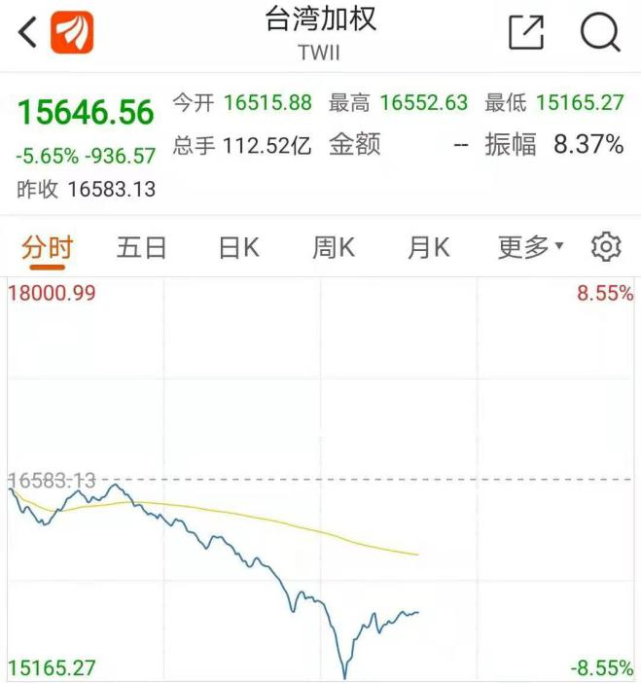 直到臺(tái)當(dāng)局基金進(jìn)場護(hù)盤,才使跌幅收斂,最終收跌680點(diǎn)。