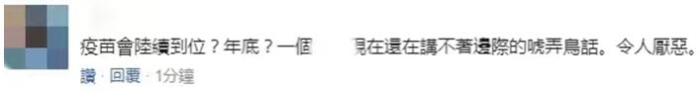 對(duì)于蔡英文的講話(huà),不少島內(nèi)民眾都提出了質(zhì)疑,有島內(nèi)網(wǎng)友問(wèn):疫苗會(huì)陸續(xù)到位?年底?一個(gè)領(lǐng)導(dǎo)人現(xiàn)在還在講不著邊際的糊弄話(huà),令人厭惡?!?/p>