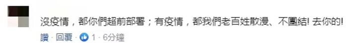 【環(huán)球網(wǎng)報(bào)道 實(shí)習(xí)記者 康博浩】據(jù)臺(tái)灣《自由時(shí)報(bào)》等臺(tái)媒報(bào)道,臺(tái)灣社區(qū)不明感染源新冠肺炎病例陸續(xù)暴發(fā),針對(duì)最新疫情變化,蔡英文今天(12日)在民進(jìn)黨中常會(huì)前發(fā)表談話(huà),蔡英文稱(chēng),防疫物資和醫(yī)療系統(tǒng)充足,疫苗也會(huì)陸續(xù)到位,呼吁臺(tái)民眾不要恐慌,團(tuán)結(jié)防疫。島內(nèi)網(wǎng)友卻對(duì)蔡英文的講話(huà)表示質(zhì)疑:疫苗會(huì)陸續(xù)到位?年底?蔡英文現(xiàn)在還在講不著邊際的糊弄話(huà),令人厭惡。