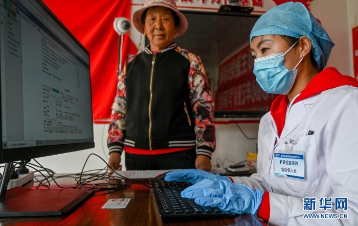 5月13日,在大榆樹鄉(xiāng)大榆樹村,醫(yī)務人員為接種新冠疫苗的村民登記。