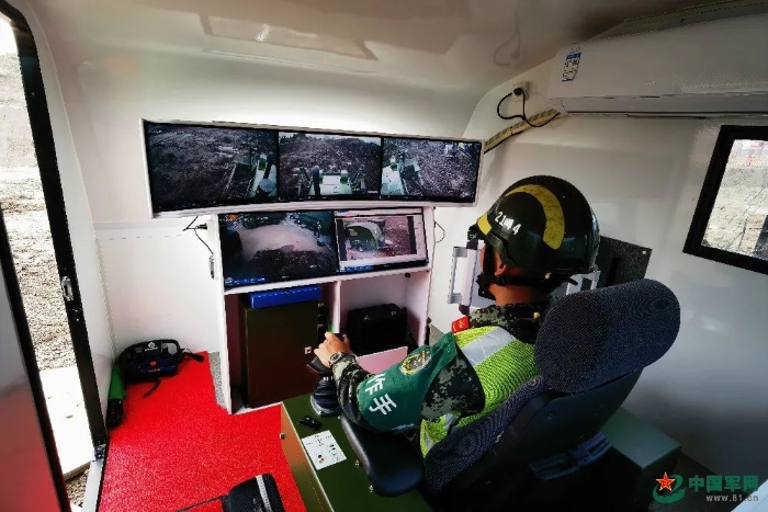 據(jù)操作手段宇介紹,這臺新配發(fā)的無人智能推土機在車頂裝載了攝像頭,能夠為操作手提供無死角的廣闊視野。除了傳統(tǒng)的艙內(nèi)駕駛模式外,操作手既可以在推土機附近使用遙控器進行近端操作,也可以通過配套的操作艙在遠處進行遙控作業(yè),既避開了駕駛員艙內(nèi)操機時的視野盲區(qū),還保障了官兵在危險路段執(zhí)行任務時的生命安全。
