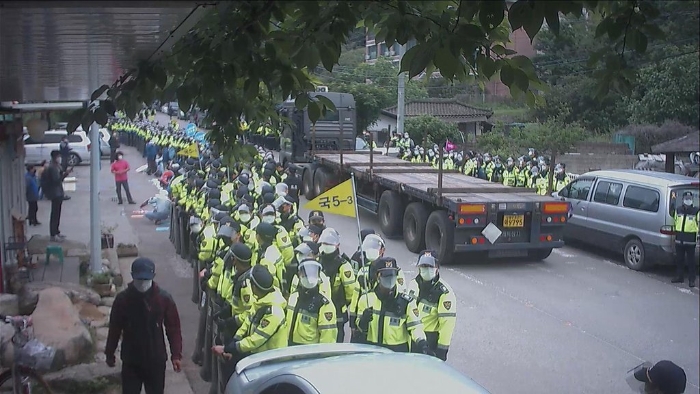 韓國國防部曾于4月28日、5月14日和18日動員數(shù)十輛車輛,將物資運入基地內(nèi),期間均與抗議民眾發(fā)生對峙,有部分民眾受傷。