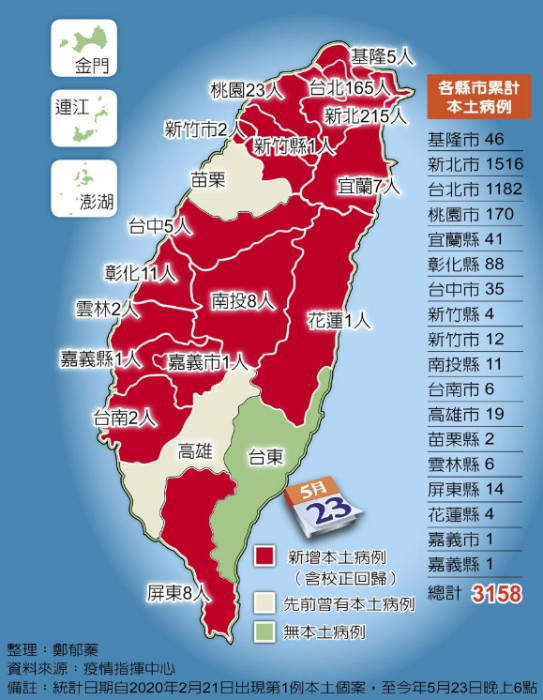 各縣市累計本土病例。圖片來源:臺灣《中國時報》