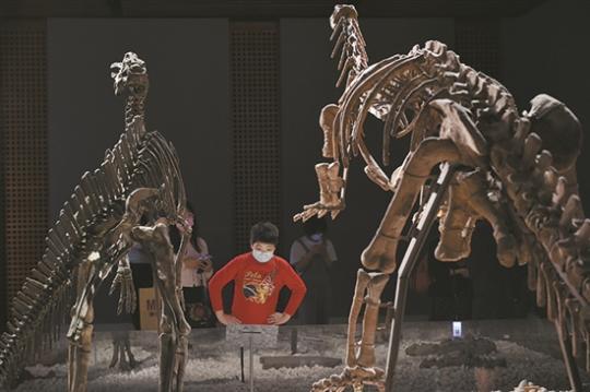游客在南京博物院參觀恐龍化石。新華社發(fā)(來源:新華網(wǎng))