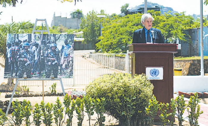 △ 在第19個聯(lián)合國國際維和人員日到來之際,聯(lián)南蘇團舉行活動紀念在南蘇丹維和任務(wù)中殉職的維和人員,聯(lián)合國秘書長特別代表發(fā)表講話?!〗埚螖z