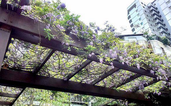 四月春暖花開,雖高溫直直飆,不過近日走在臺灣各街頭,都能發(fā)現(xiàn)美麗花朵盛開!話說剛賞完櫻花,許多哈日族又開始瘋曾被CNN評選為“世界10大夢幻景點(diǎn)”的紫藤花,然其實(shí)臺北是仁愛路四段也有“夢幻紫藤花”,雖然沒有日本足利紫藤花卉公園那么壯觀,但看著浪漫紫色花朵直泄而下,許多愛花人也猛拍照、好開心!