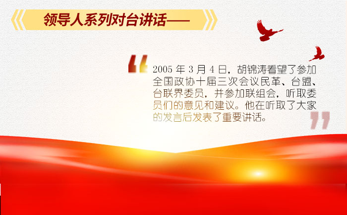 【百年征程 回看臺?!款I(lǐng)導(dǎo)人系列對臺講話之胡錦濤(二)
