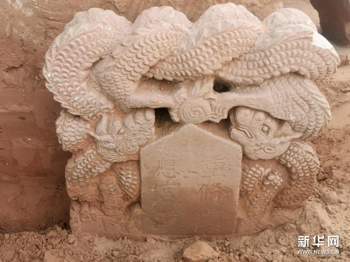 這是在陜西榆林清平堡遺址出土的石碑(2020年6月5日攝)。新華社發(fā)