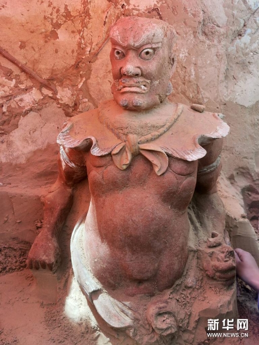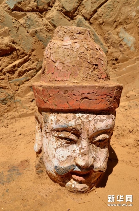 這是在陜西榆林清平堡遺址出土的泥塑造像(2020年5月24日攝)。新華社發(fā)