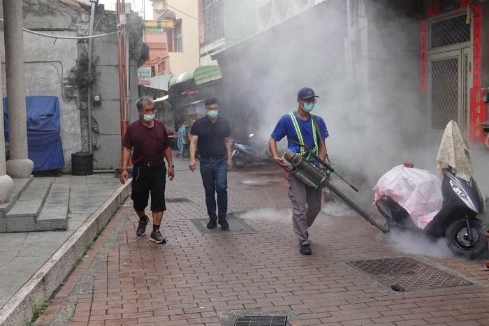 圖為公所清潔隊(duì)針對小區(qū)環(huán)境大清消。(資料照)