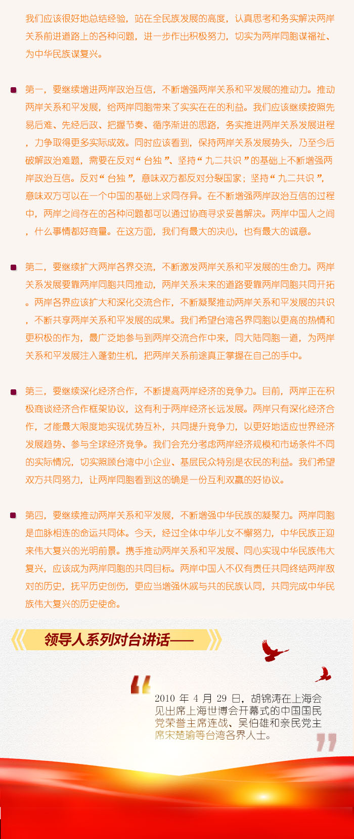 【百年征程 回看臺(tái)海】領(lǐng)導(dǎo)人系列對(duì)臺(tái)講話之胡錦濤(十五)