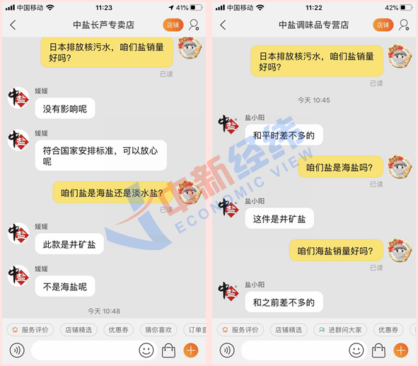 中新經(jīng)緯記者聯(lián)系幾家售鹽電商旗艦店工作人員,詢問是否受到日本欲排核廢水影響。客服回復(fù)稱:“沒有影響,可以放心,符合國家標(biāo)準(zhǔn)?!碑?dāng)詢問近期銷量時,客服表示:“和平時差不多?!?/p>