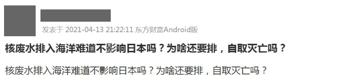對于日本決定以海洋排放方式處置核廢水,眾多投資者也是非常關(guān)心。股吧中,有投資者發(fā)問:“核廢水排入海洋難道不影響日本嗎?為啥還要排,自取滅亡嗎?”