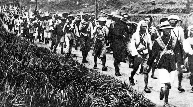 中央蘇區(qū)第二次反“圍剿”戰(zhàn)爭中的中央紅軍在行軍。圖源:新華社