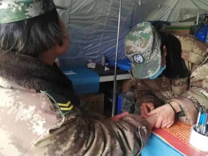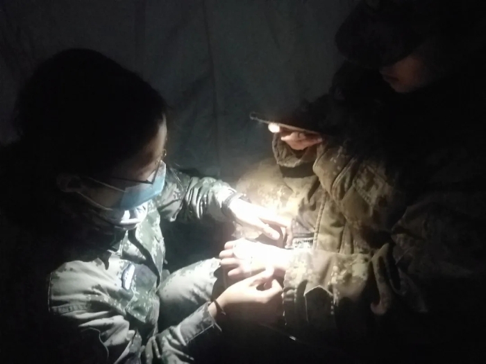 高原駐訓生活條件異常艱苦,被安排在旅衛(wèi)生連的文職人員,打著手電有條不紊的坐診、看病、清創(chuàng)、拿藥。她們積極發(fā)揮專業(yè)特長,將戰(zhàn)救訓練搬到了訓練場,組織連隊官兵開展開放氣道、胸部包扎、骨折固定、心肺復蘇等訓練內(nèi)容,毫無保留地傾囊相授,耐心細致地講解、示范、糾錯。精湛的技術、耐心的教學態(tài)度得到了官兵的一致好評。