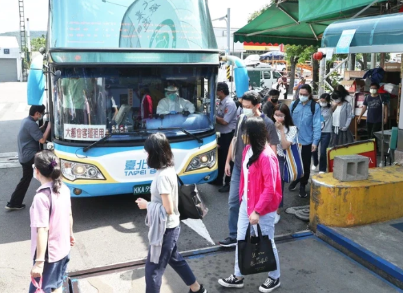 北農(nóng)先后傳出多人確診,聯(lián)醫(yī)率專車載送相關(guān)人員前往快篩,距離5月20日首傳案例已1個月。圖片來源:臺灣《聯(lián)合報》