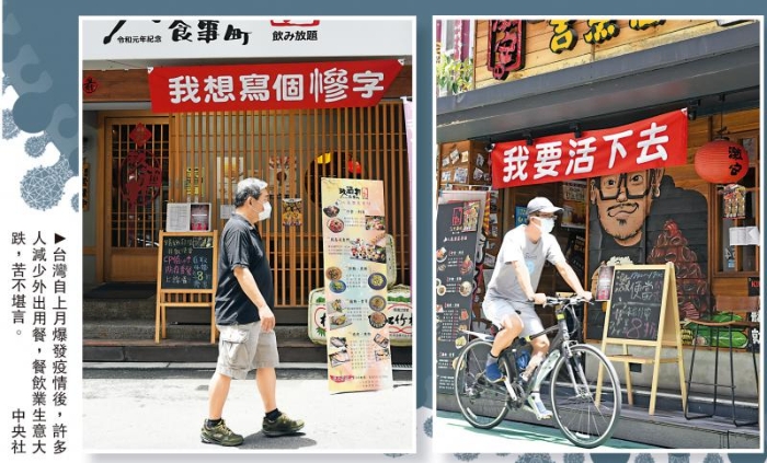 圖:臺灣自上月爆發(fā)疫情后,許多人減少外出用餐,餐飲業(yè)生意大跌,苦不堪言。\中央社