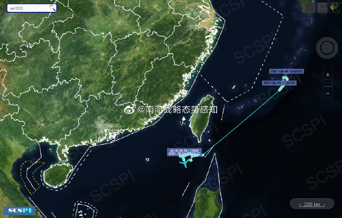 6月24日下午13時許,美空軍1架RC-135W電子偵察機進入南海開展偵察機行動。而與此同時,美軍另有1架RC-135S導彈監(jiān)視機正在東海上空盤旋。