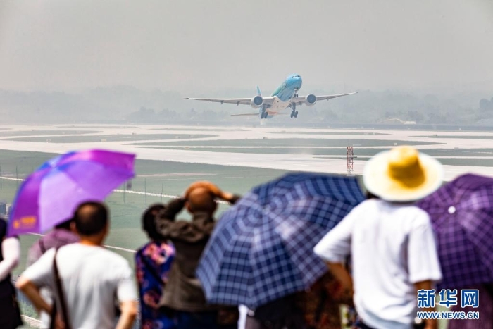 6月27日,四川航空公司飛往北京首都國際機場的3U8001航班在成都天府國際機場起飛,這是該機場投入使用后的首個航班。