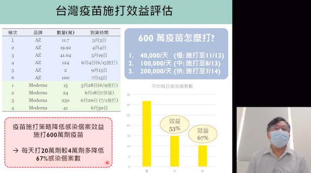 陳秀熙呼吁,疫苗接種一定要加速,才能避免疫情反撲。(照片:截取自新冠肺炎防疫科學在線直播)