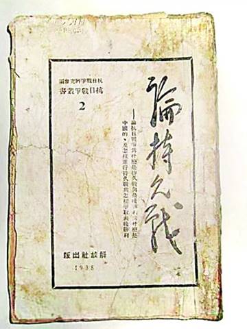 延安解放社版《論持久戰(zhàn)》。圖源:光明日?qǐng)?bào)-中國(guó)人民抗日戰(zhàn)爭(zhēng)紀(jì)念館供圖