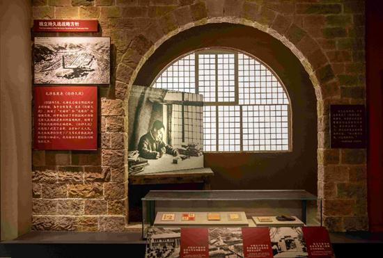 中國(guó)人民抗日戰(zhàn)爭(zhēng)紀(jì)念館一隅,還原毛澤東在延安窯洞里寫(xiě)《論持久戰(zhàn)》的場(chǎng)景。圖源:中國(guó)青年網(wǎng)-中國(guó)青年報(bào)