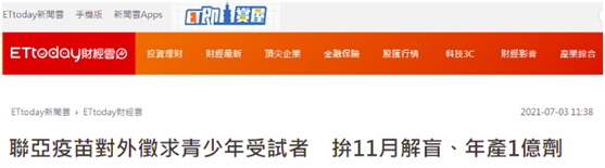 報道稱,聯(lián)亞生技的疫苗已于上月公布二期臨床期中報告,力拼盡速取得緊急授權(quán)(EUA),已向印度申請執(zhí)行三期臨床試驗(yàn),未來年產(chǎn)量目標(biāo)1億劑。