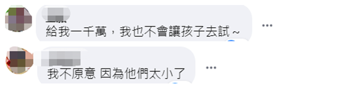 有網(wǎng)友說,“給我1000萬,我也不會讓孩子去試~”↓