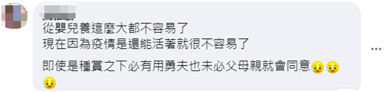 也有網(wǎng)友說,從嬰兒養(yǎng)這么大都不容易了,現(xiàn)在因?yàn)橐咔檫€能活著就很不容易了,即使是種賞之下必有勇夫也未必父母親就會同意?!?/p>