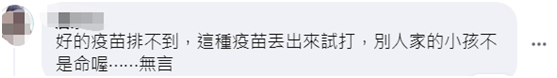 有網(wǎng)友感嘆:“好的疫苗排不到,這種疫苗丟出來試打,別人家的小孩不是命哦??無言?!薄?/p>