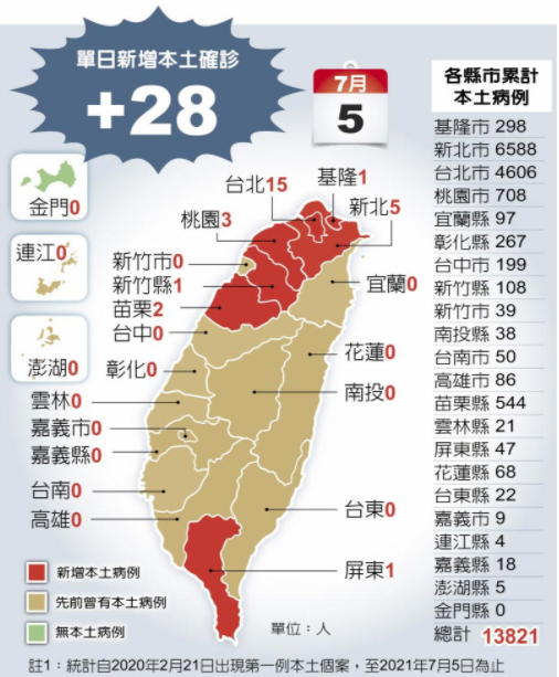 各縣市累計(jì)本土病例。圖片來源:臺灣《中國時(shí)報(bào)》
