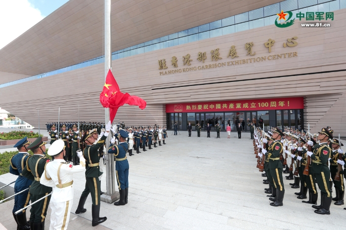 在中國共產(chǎn)黨成立100周年之際,駐香港部隊展覽中心建成開放。7月8日,駐香港部隊展覽中心開放啟動儀式在昂船洲軍營隆重舉行,香港特別行政區(qū)行政長官林鄭月娥,中央駐港機構(gòu)負(fù)責(zé)人,南部戰(zhàn)區(qū)和駐香港部隊有關(guān)領(lǐng)導(dǎo),以及駐香港部隊官兵和香港愛國愛港人士代表參加并參觀展覽。開放啟動儀式前,在展覽中心廣場組織升國旗儀式。