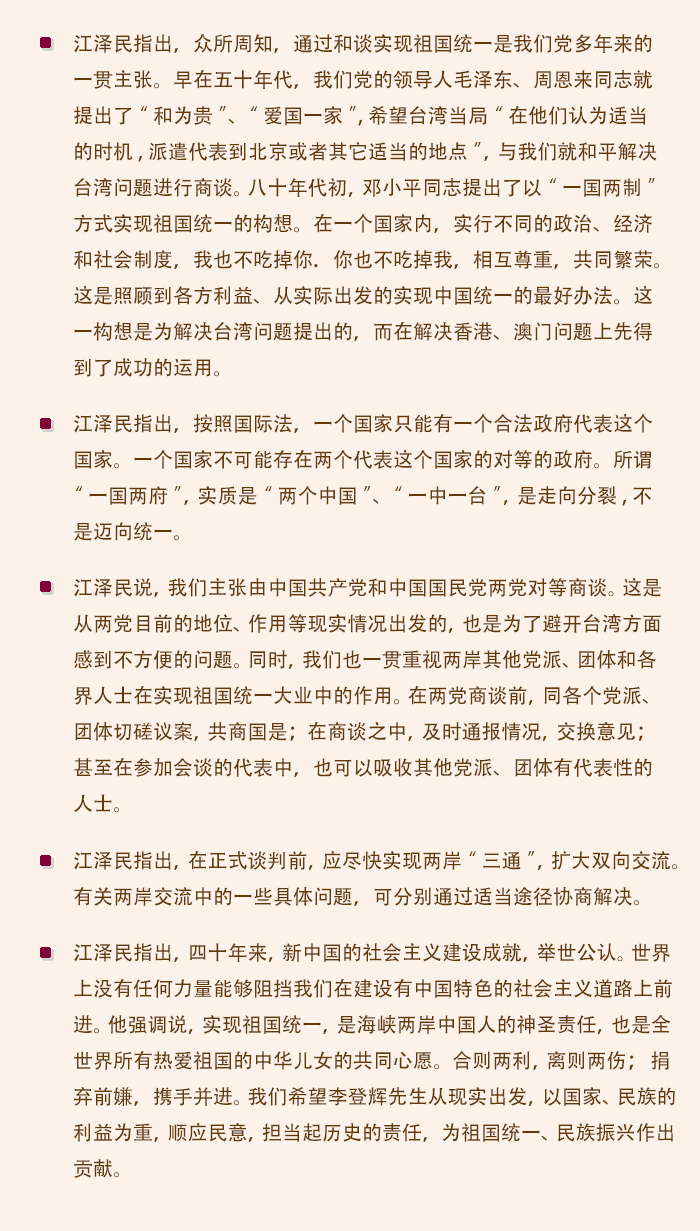 【百年征程 回看臺?!款I(lǐng)導(dǎo)人系列對臺講話之江澤民(三)
