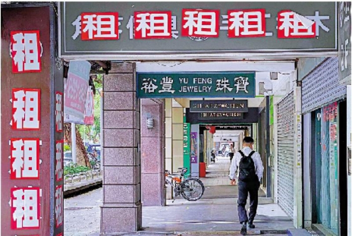 圖:臺灣疫情持續(xù),嚴(yán)重沖擊當(dāng)?shù)亟?jīng)濟(jì)。臺北街頭出現(xiàn)不少待租的鋪面。/中央社