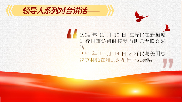 【百年征程 回看臺(tái)?!款I(lǐng)導(dǎo)人系列對(duì)臺(tái)講話(huà)之江澤民(八)