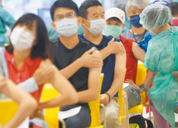 圖為臺北市教職員工22日在花博接種站施打疫苗。(圖片來源:臺灣《中國時報》)
