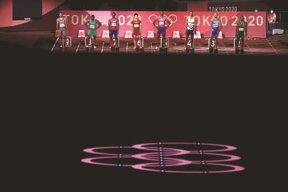 隨著新國立競(jìng)技場(chǎng)燈光暗下,聚光燈投向百米跑道,“地球上跑得最快的人”展開一場(chǎng)終極較量。身穿紅色戰(zhàn)袍的蘇炳添第一個(gè)走入賽場(chǎng),站上代表強(qiáng)者的第六道。當(dāng)現(xiàn)場(chǎng)主持人介紹他的名字,中國“飛人”驕傲地指向胸前的國旗和“CHINA(中國)”字樣。作為決賽起跑線上唯一的黃種人,也是唯一的“80后”老將,蘇炳添已可以盡情享受屬于自己的榮耀。但在他心里,已經(jīng)設(shè)定了又一個(gè)目標(biāo)——決賽再破一次10秒。