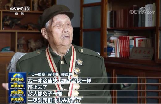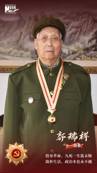 2021年6月29日,101歲的郭瑞祥身著綠軍裝,坐在輪椅上接受了習近平總書記親自授予的“七一勛章”。